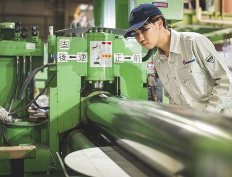 現在はロール加工を担当し、図面通りに金属を曲げて形にしていく仕事をしています。