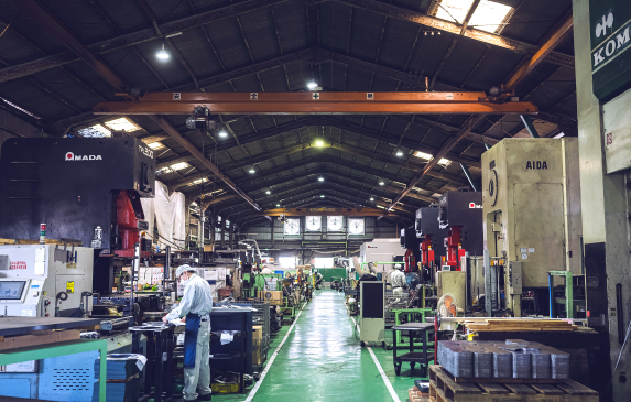 製造部⾨は、図⾯をもとに多様な⾦属部品を形にしていく、まさにものづくりの最前線です。折曲・プレス・溶接・機械加⼯など幅広い⼯程を担い、最新設備と職⼈の技術を融合させながら、⾼精度で信頼性の⾼い製品を⽣み出しています。⾦属加⼯全般に興味がある⽅、⼿に職をつけて成⻑したい⽅にとって、スキルを磨きながら実感を得られるやりがいのある現場です。